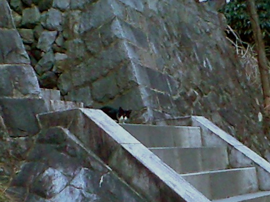 ぬこ発見。野良だが、人は興味ないし怖くもないらしい。