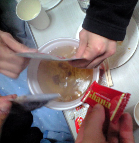 残ったチョコレートを辛みそ風に麺に絡めるのが通。